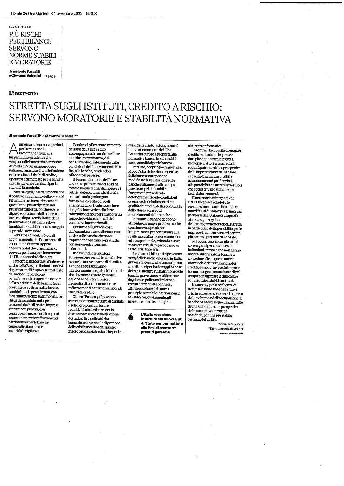 Articolo del Presidente Patuelli su Il Sole 24 Ore