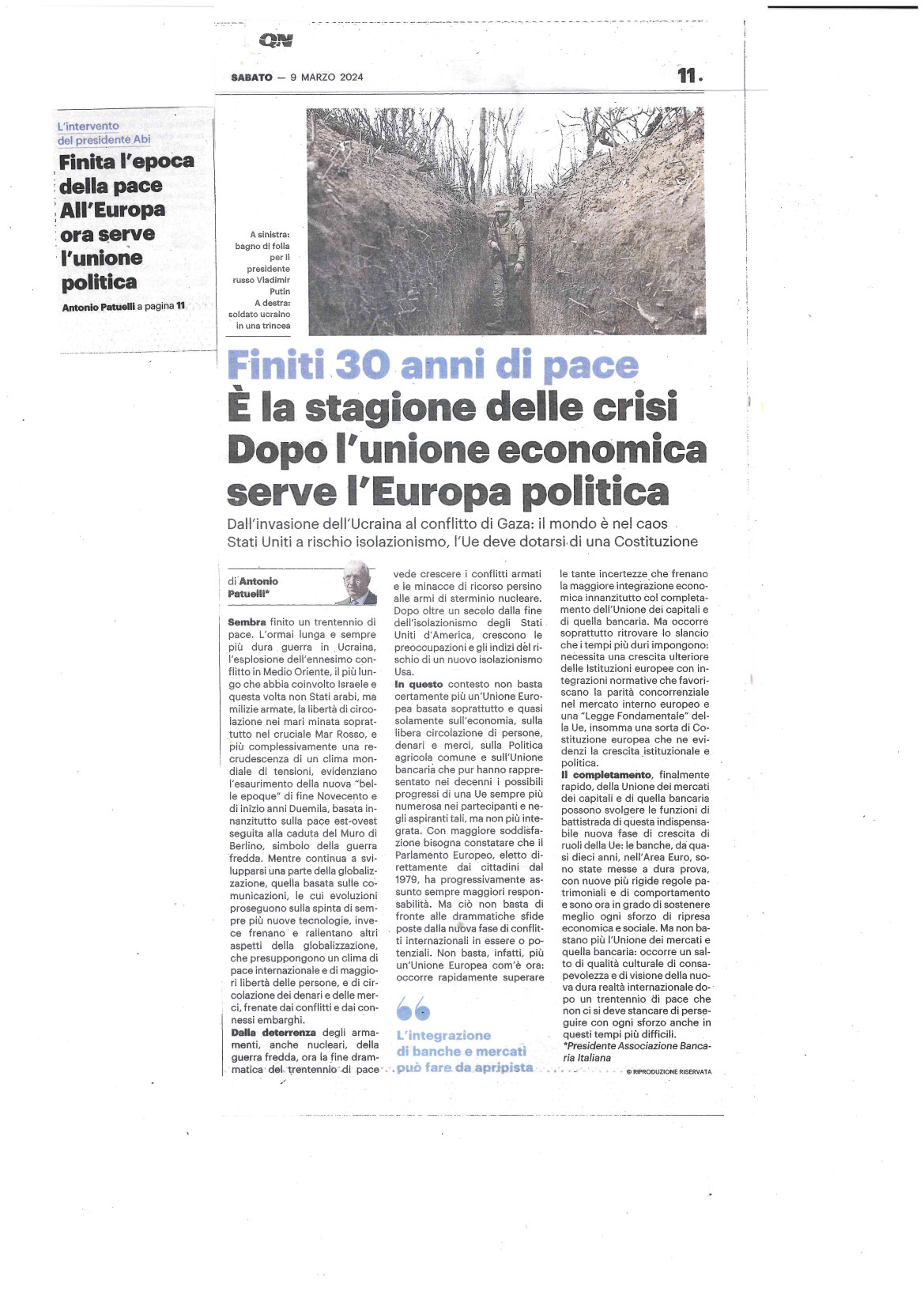 Articolo del Presidente Patuelli su QN - Il Resto del Carlino - La Nazione