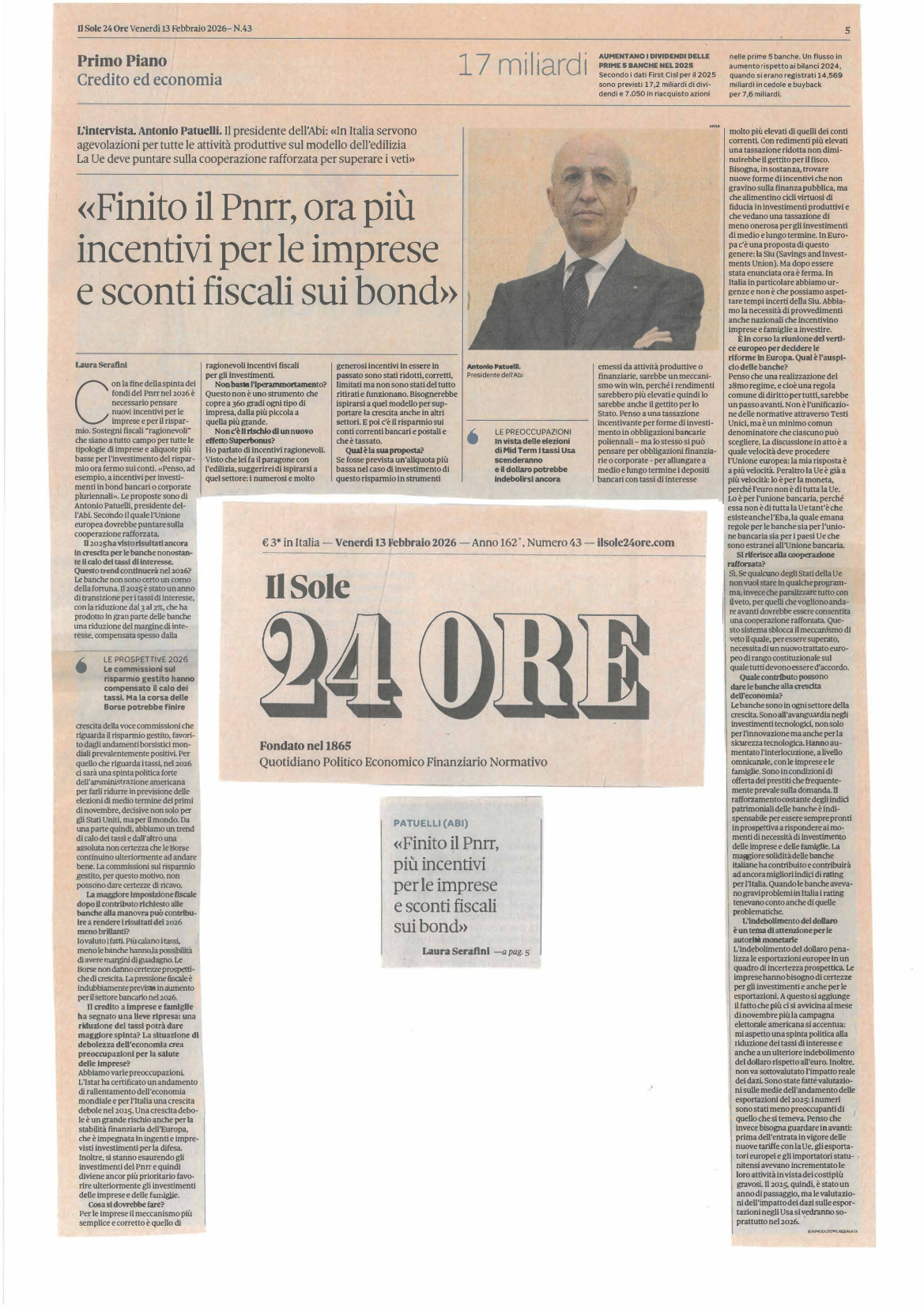Intervista del Presidente Patuelli a Il Sole 24 Ore